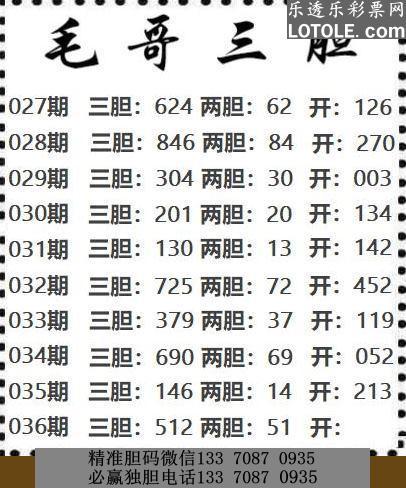 标题: 36毛哥三胆乐透乐 第一时间发布