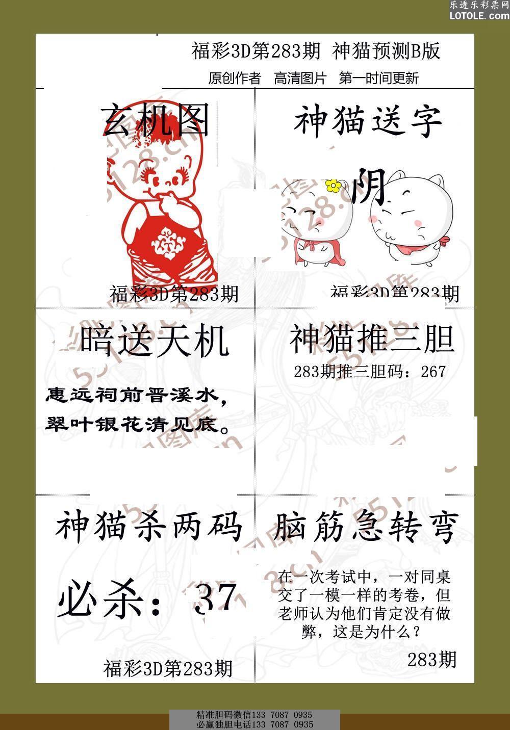 标题: 283神猫预测乐透乐 第一时间发布