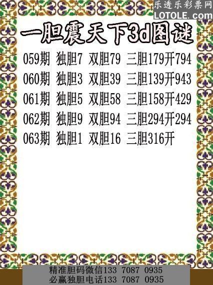 标题: 63天下独胆乐透乐 第一时间发布