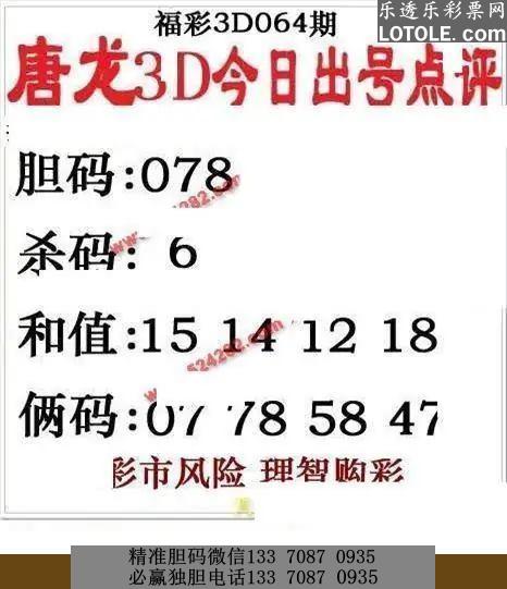 标题: 64唐龙点评乐透乐 第一时间发布