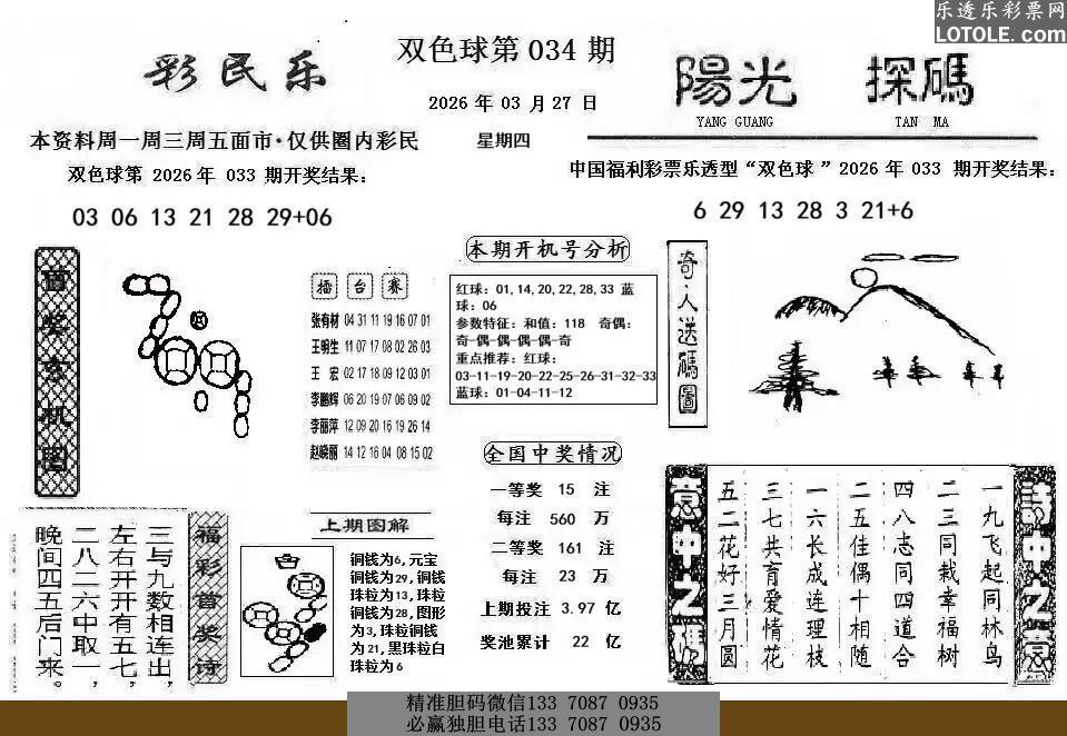 6034彩民乐 阳光探码图文版乐透乐 第一时间发布