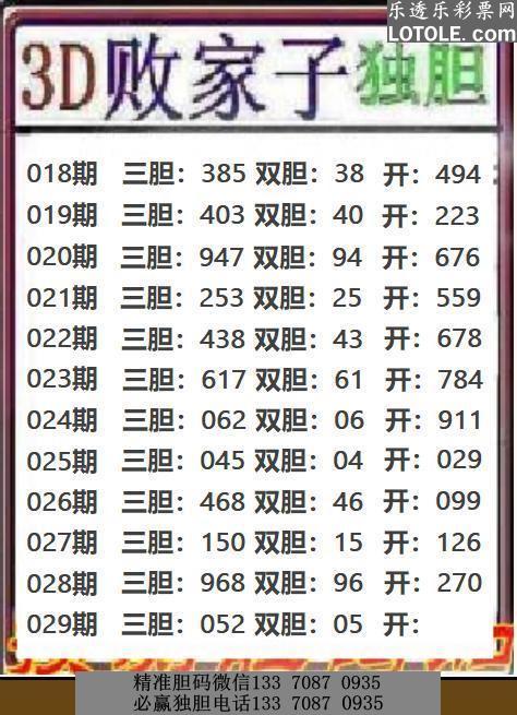标题: 29败家子独胆乐透乐 第一时间发布