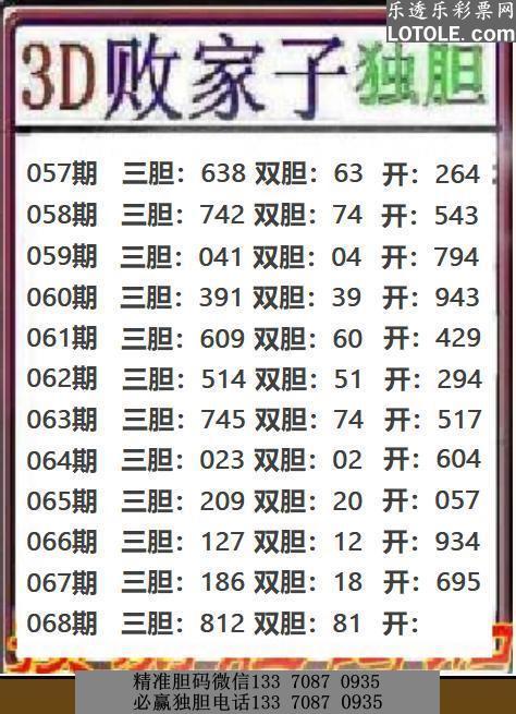68败家子独胆乐透乐 第一时间发布