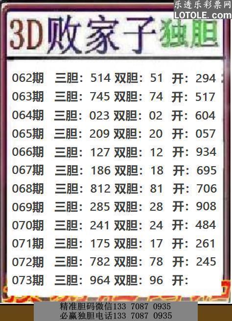 73败家子独胆乐透乐 第一时间发布