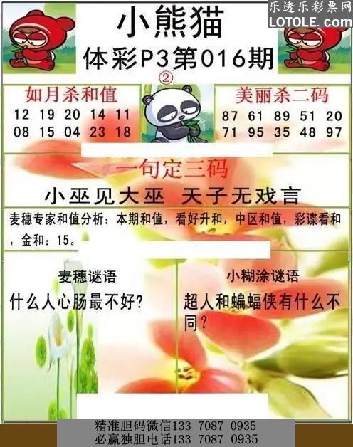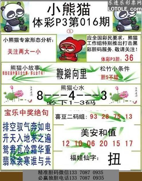 标题: 016小熊猫乐透乐 第一时间发布
