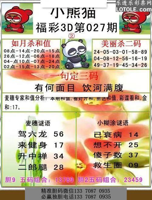 27小熊猫彩报乐透乐 第一时间发布