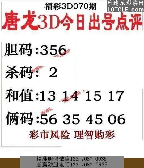 70唐龙点评乐透乐 第一时间发布