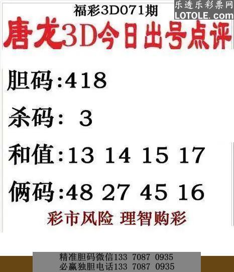 71唐龙点评乐透乐 第一时间发布