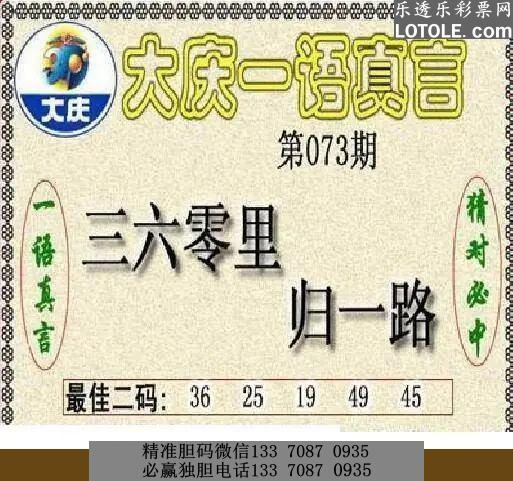 73大庆黑胆王乐透乐 第一时间发布